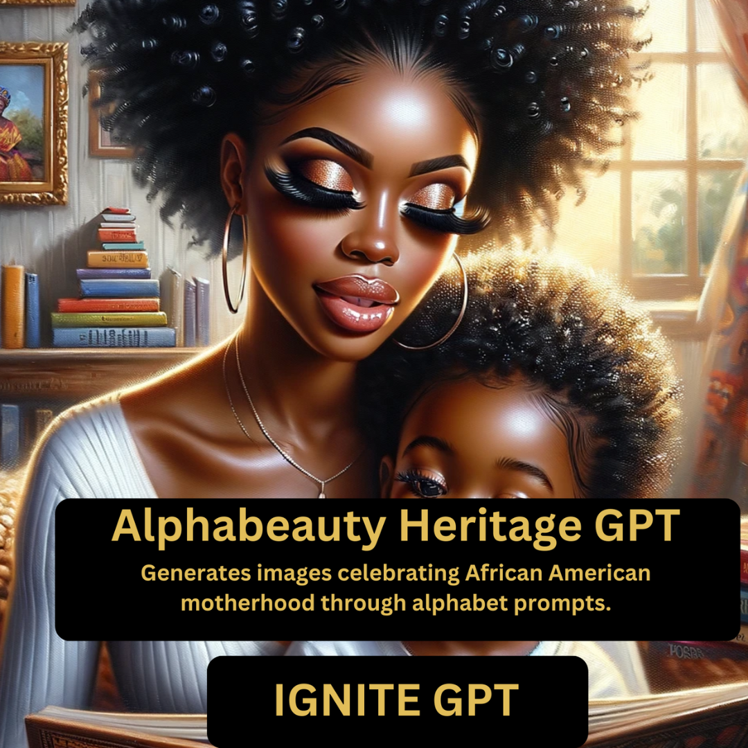 Introducing the AlphaBeauty Heritage GPT – a groundbreaking digital artwork generator that celebrates the beauty and resilience of African American motherhood through captivating alphabet prompts. This unique PNG image collection embodies the rich cultural heritage and diverse experiences of African American families, turning each letter into a story of love, strength, and heritage. From "A" for Affection to "Z" for Zeal, every piece of art is a testament to the unbreakable bond between a mother and her children, portrayed through vibrant colors, emotive designs, and powerful symbols.