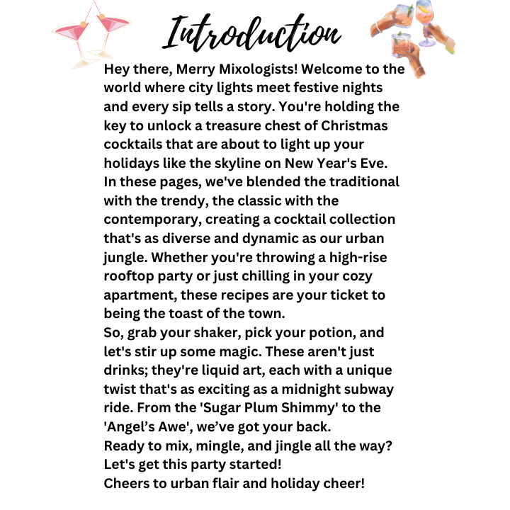 Hey, cocktail lovers! Ready to jazz up your holiday season? Dive into our newly launched eBook, "Merry Mixology: A Yuletide Journey," where urban flair meets festive cheer in every glass!
