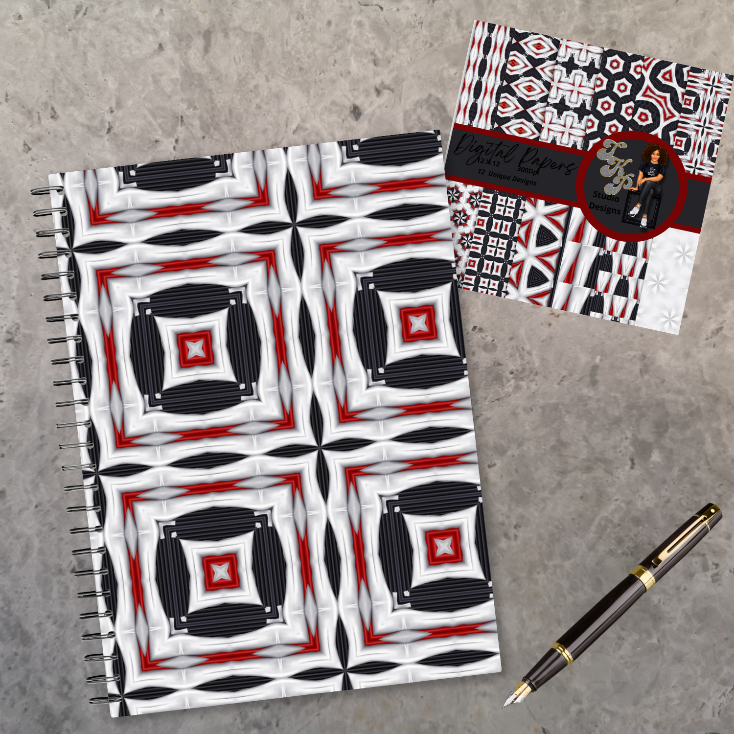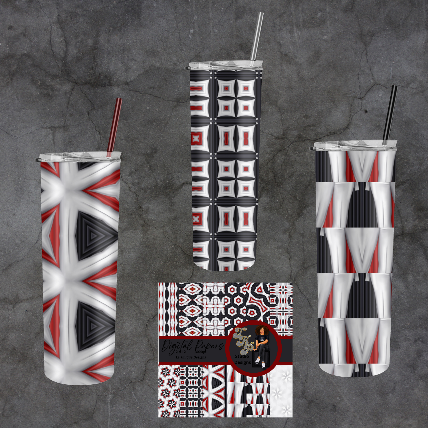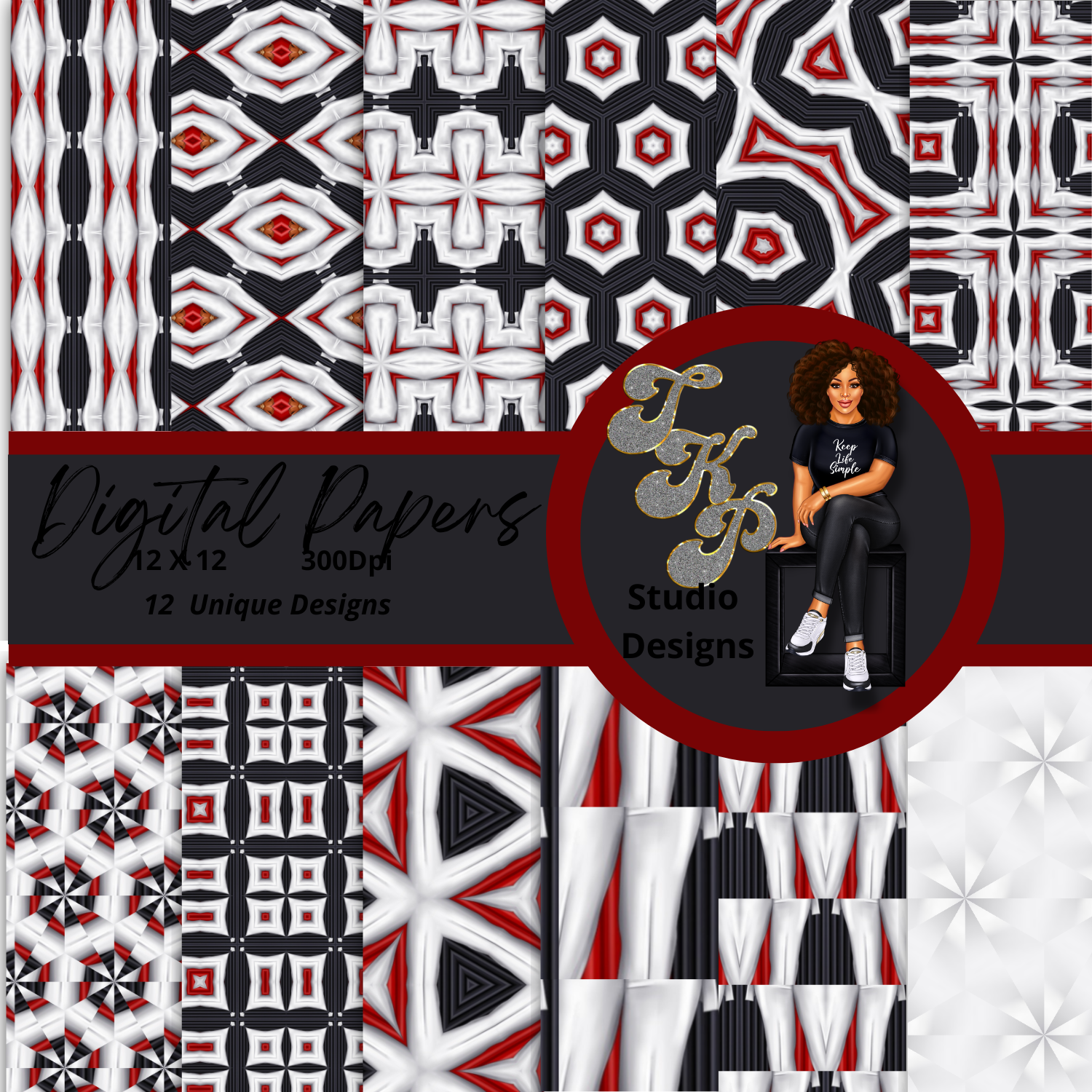 Red, White and Grey Digital Papers